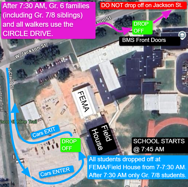 Beginning Tuesday, September 30th, and running each day school is in session, BMS will be following updated morning drop-off procedures. Please review carefully: